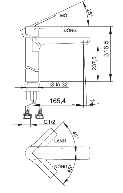 - Ghi chú: Thân cao, sơn đen, sản phẩm bao gồm bộ dây cấp